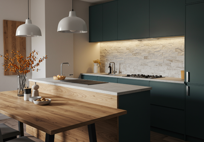 Каждый уважающий себя дизайнер знает: кухни в современном дизайне 2025 года отходят от привычной нейтральности. Дизайнеры активно внедряют насыщенные земляные тона — терракоту, охру, глубокий зелёный.